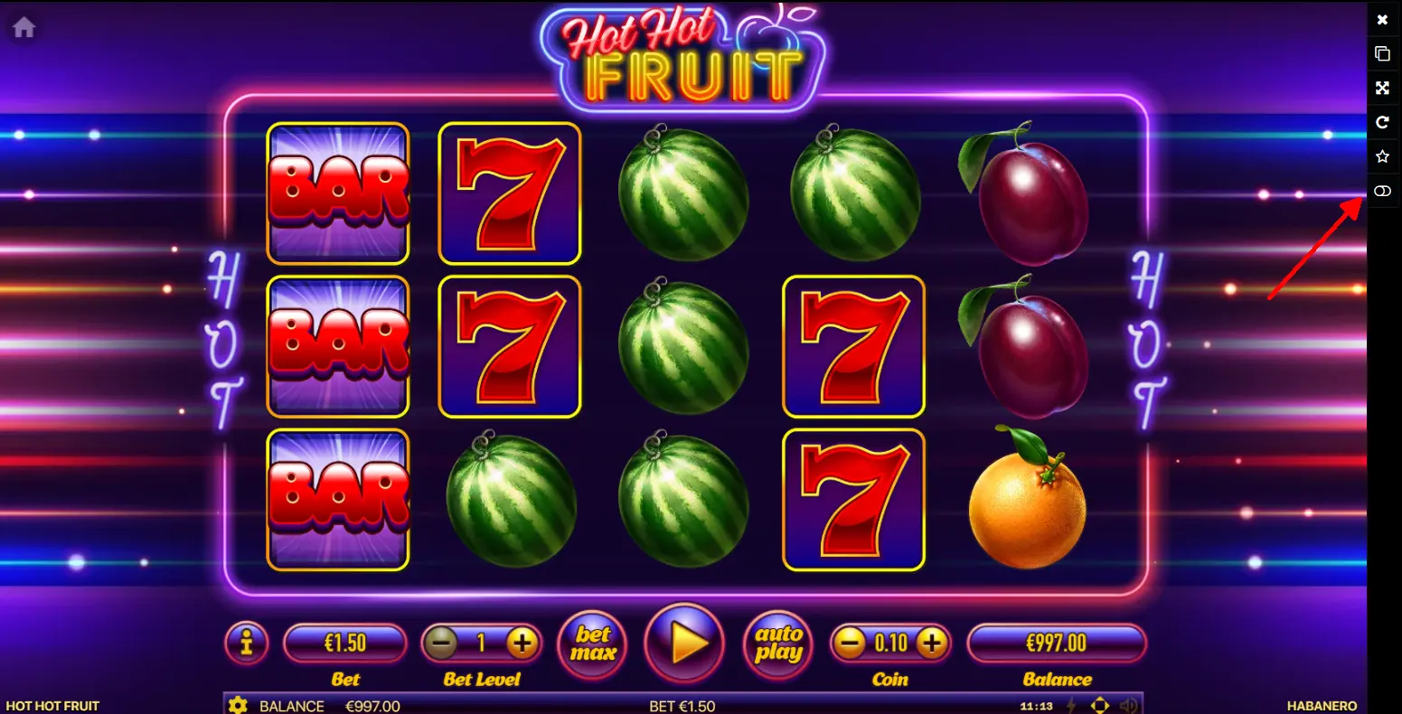 Hot Hot Fruit slotunda demo modunda oynamaya başlamak için, bu slotun mevcut olduğu casino sitesi veya uygulamasında ilgili seçeneği seçmek gerekir. Genellikle bunun için "Demo" veya "Ücretsiz Deneyin" düğmesine tıklamak yeterlidir. Eğer demo modu etkinleştirmekte zorluk yaşanıyorsa, casinodan sağlanan ekran görüntüsündeki geçiş düğmesine tıklamak önerilir.